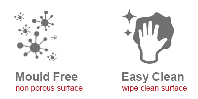 Our panels fit together with a tongue & groove joint giving a flush finish that is 100% waterproof, fit to existing tiles or any flat surface to create a perfectly flat wall that requires little to no maintenance...and no mould.